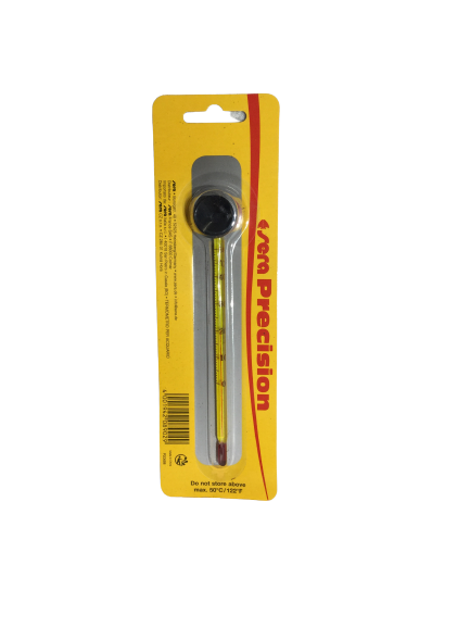 Moderne glastermometer i flot design til akvarier og terrarier. Med en temparaturskala på 0-50 °C og gummisugekopper. Mål: Ø 6 mm, længe 150 mm